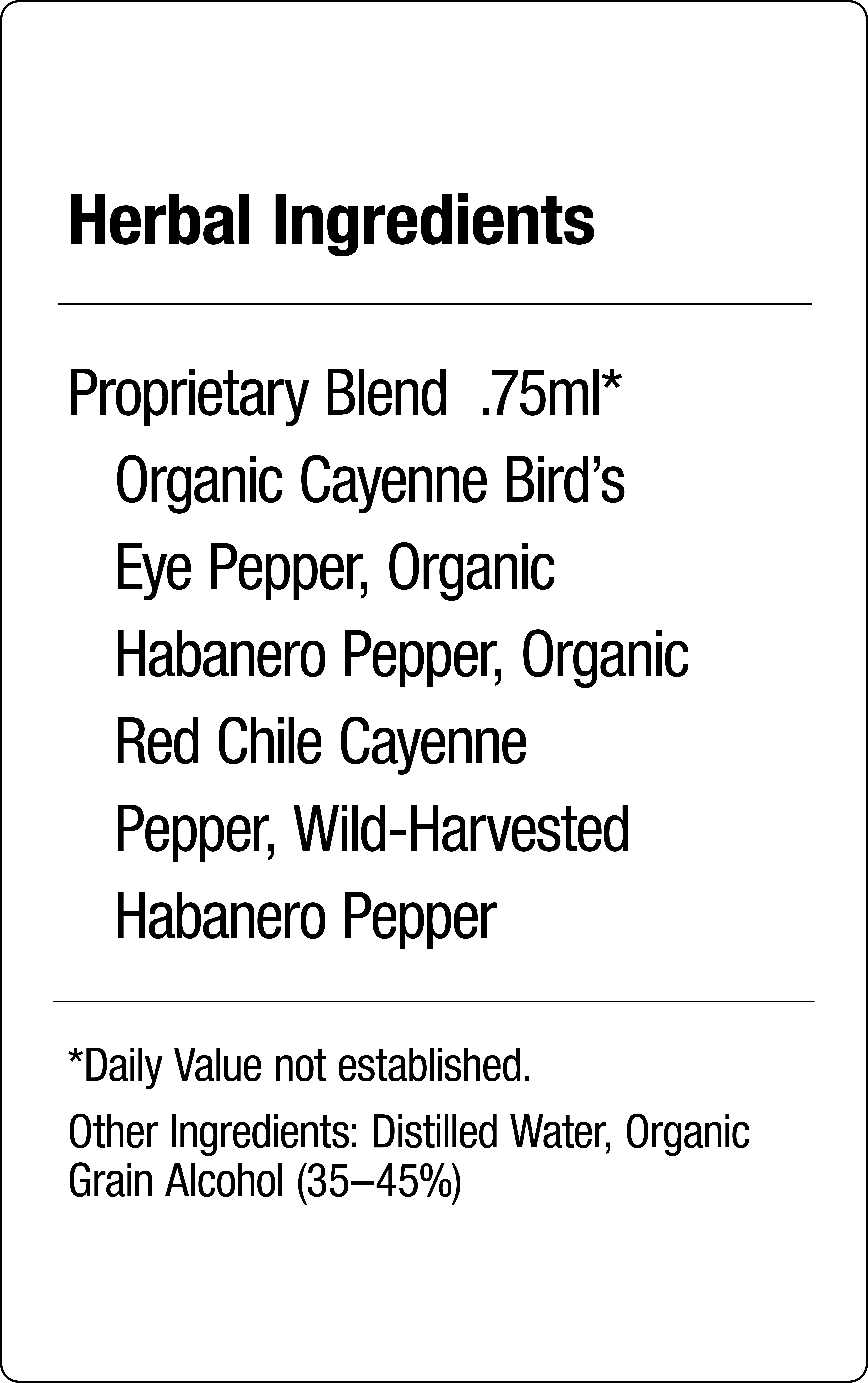 We have streamlined the ingredient list on our most recent Cayenne labels to account for routine tweaks and changes with each batch we create. Dr. Schulze uses a wide range of peppers in these formulas, but his focus is always on HEAT—with a finished product of at least 250,000HU (heat units) on the Scoville Scale. It’s the heat that supports circulation.
