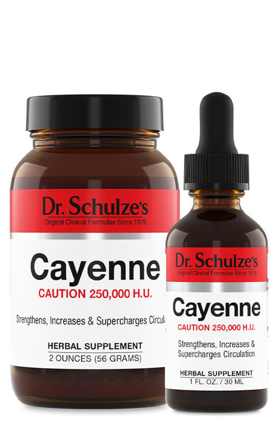 Although the types of peppers and their exact blend can fluctuate slightly with each batch, the finished product always meets Dr. Schulze’s highest quality standards of no less than 250,000HU (heat units). That’s what is most important and why his Cayenne formulas are like no other: to boost circulation throughout the body and promote health.